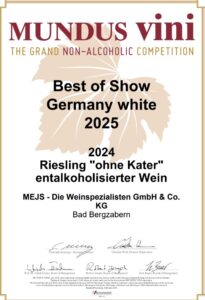 Riesling „ohne Kater“ – Best of Show Germany white 2025 bei MundusVinis Vini „The Grand Non-Alcoholic Competition“